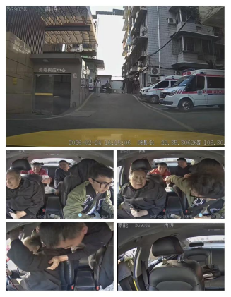 就在這時(shí),前來交班的同事冉濤師傅也來到了車旁。聽到老人說要去渝北區(qū)第二人民醫(yī)院,又了解了老人的艱難處境后,冉師傅沒有絲毫猶豫,當(dāng)即決定和汪師傅一起送老人去醫(yī)院。