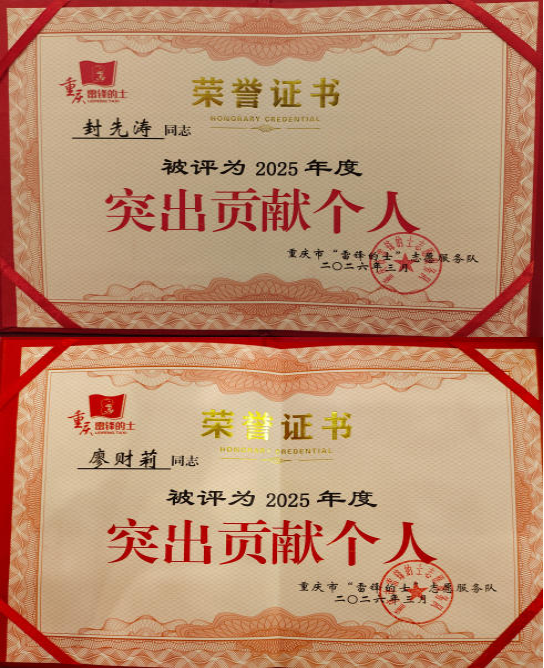 發(fā)表時間:2026-03-09 10:40作者:陶敏來源:新渝強 3月5日學雷鋒紀念日當天,重慶市“雷鋒的士”志愿服務工作總結暨表揚大會隆重召開。新渝強黨小組成員封先濤、廖財莉憑借過去一年在志愿服務領域的突出表現,被重慶市“雷鋒的士”志愿服務隊授予“2025年度突出貢獻個人”榮譽稱號。 會上,廖財莉同志作為突出貢獻個人代表上臺發(fā)言。她結合多年服務一線的親身經歷,分享了在平凡崗位上踐行雷鋒精神的心路歷程?!胺较虮P雖小,但傳遞的是城市的溫度;車廂雖短,但延伸的是愛心的長度。”樸實真摯的發(fā)言贏得了現場陣陣掌聲,展現了公司“雷鋒的士”駕駛員昂揚向上的精神風貌。 封先濤、廖財莉兩位同志長期扎根服務一線,熱心公益、助人為樂。無論是參與愛心送考、重陽敬老,還是為社區(qū)困難群眾提供點對點幫扶,他們始終沖鋒在前,用實際行動傳遞社會溫情。本小組成員將以他們?yōu)榘駱?,持續(xù)弘揚雷鋒精神,讓“雷鋒的士”這面旗幟在山城大地高高飄揚,為城市文明建設貢獻更多力量。