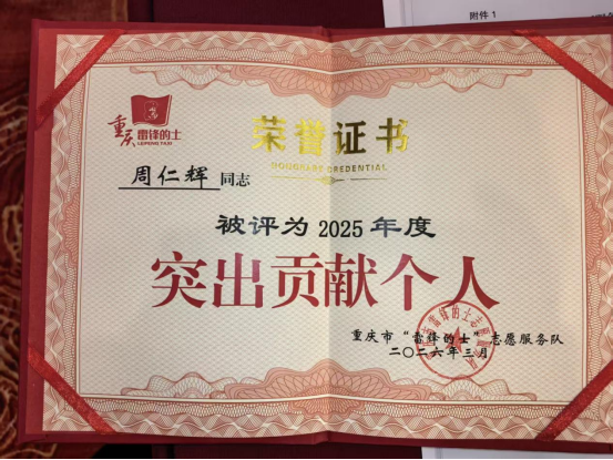 發(fā)表時(shí)間:2026-03-09 10:52作者:楊超來(lái)源:奉節(jié) 2026年3月5日下午,重慶市“雷鋒的士”志愿服務(wù)隊(duì)工作會(huì)順利召開(kāi)。重慶“雷鋒的士·紅巖先鋒隊(duì)”第七黨小組隊(duì)員周仁輝參加會(huì)議,并榮獲2025年度“突出貢獻(xiàn)個(gè)人”榮譽(yù)稱號(hào)。周仁輝說(shuō):手捧這份沉甸甸的榮譽(yù),我內(nèi)心倍感榮幸,也滿懷感恩。這份榮譽(yù)不僅是對(duì)我個(gè)人工作的肯定,更屬于每一位堅(jiān)守初心、默默奉獻(xiàn)的“雷鋒的士”同行。 作為一名出租車(chē)駕駛員,我始終以雷鋒精神為指引,把乘客當(dāng)親人,把服務(wù)當(dāng)責(zé)任,在平凡的崗位上踐行初心使命。日常營(yíng)運(yùn)中,我堅(jiān)持文明駕駛、誠(chéng)信服務(wù),主動(dòng)扶老助殘、拾金不昧,積極參與愛(ài)心送考、應(yīng)急幫扶等志愿服務(wù),用真心對(duì)待每一位乘客,用細(xì)心做好每一次服務(wù),用實(shí)際行動(dòng)擦亮“雷鋒的士”這塊金字招牌。 在我心中,這份獎(jiǎng)項(xiàng)既是榮譽(yù),更是沉甸甸的責(zé)任。它時(shí)刻提醒我,要始終牢記駕駛員的使命擔(dān)當(dāng),把服務(wù)做到乘客心坎上。今后,我將以此次表彰為新的起點(diǎn),更加嚴(yán)格要求自己,不斷提升服務(wù)質(zhì)量,以更熱情的態(tài)度、更專業(yè)的技能、更文明的形象投入營(yíng)運(yùn)工作,讓乘客坐得放心、乘得舒心。 出租車(chē)是城市文明的流動(dòng)窗口,更是展示城市形象的重要名片。未來(lái),我將繼續(xù)發(fā)揚(yáng)雷鋒精神,堅(jiān)守崗位、履職盡責(zé),主動(dòng)帶動(dòng)身邊的駕駛員朋友一起提升服務(wù)水平,共同維護(hù)良好的行業(yè)形象。我將立足奉節(jié)、服務(wù)奉節(jié),用方向盤(pán)傳遞溫暖,用車(chē)廂承載安心,努力為家鄉(xiāng)發(fā)展貢獻(xiàn)自己的一份力量,讓“雷鋒的士”成為街頭最暖心、最亮眼的文明風(fēng)景。