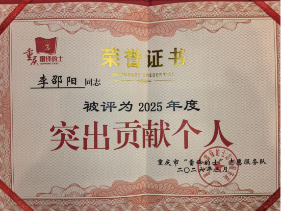 圖為:第七黨小組開州李邵陽榮獲2025重慶“雷鋒的士”“突出貢獻個人”。 |