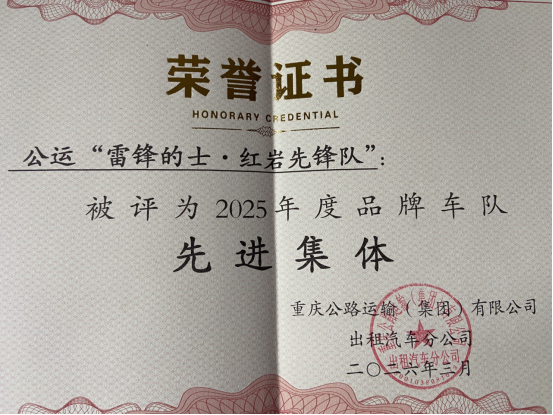 圖為:公運(yùn)“雷鋒的士·紅巖先鋒隊(duì)”獲評(píng)2025年度品牌車隊(duì)先進(jìn)集體