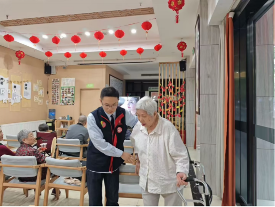攙扶老人進(jìn)行適度運(yùn)動(dòng)