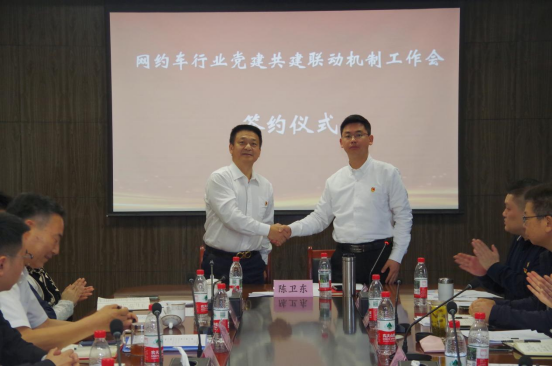 (授牌儀式) 會議宣讀《關于成立行業“黨建共建聯動”工作領導小組暨領導小組成員任職的通知》,正式成立重慶市出租汽車暨汽車租賃行業黨建共建聯動工作領導小組。領導小組由市出協行業黨委書記陳衛東擔任組長,山東鞍馬、重慶吉利優行黨支部書記任副組長,各參與網約車黨組織負責人為成員,全面統籌推進行業黨建共建聯動各項工作。會議明確,在不改變各基層黨組織原有隸屬關系與組織形態基礎上,由行業協會黨委牽頭,構建共建聯動、整體推進的行業黨建新格局。 現場舉行黨建共建聯動工作協議簽約與授牌儀式,11家黨組織集中簽訂共建協議、接受共建授牌,標志著全市網約車行業黨建共建聯動機制正式落地運行。鞍馬出行、曹操出行作為黨建共建代表發言,表態將主動履行共建責任,積極參與聯動工作,充分發揮先鋒模范作用。 市道運兩類群體黨建中心副主任陳莉、市出協行業黨委書記陳衛東先后作講話。會議強調,要以此次會議為新起點,牢牢把握黨建引領根本方向,持續完善聯動運行機制,深化組織聯建、理論聯學、資源聯享、服務聯做、治理聯抓,切實打破行業黨建壁壘,把分散黨組織凝聚成整體合力;要立足網約車新業態、新就業群體特點,把黨建工作與司機權益保障、行業規范運營、文明出行服務深度融合,打造全市網約車行業紅色黨建品牌,以高質量黨建引領全市出租汽車、網約車行業高質量健康發展。 |