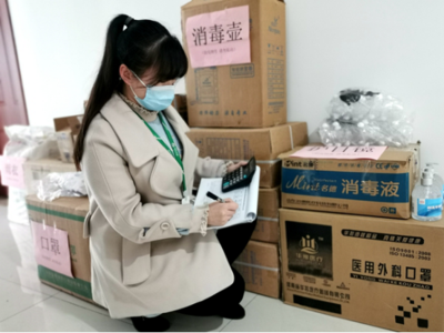 管理人員清點防疫物資,保障節(jié)日期間儲備量充足。