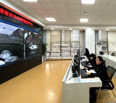 管理人員查看GPS,隨時關(guān)注車輛營運和駕駛員戴口罩等情況。