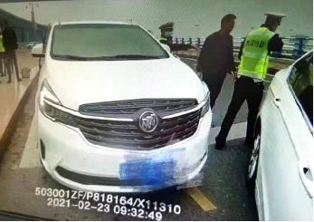 當(dāng)事車輛被查處(執(zhí)法記錄儀視頻截圖) (文/圖 李嘉男) |