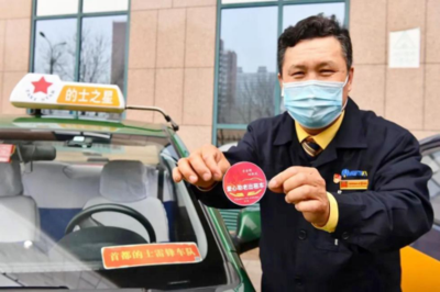 北京市主會(huì)場(chǎng)外,出租車司機(jī)張貼敬老標(biāo)識(shí)(北京市首都的士車隊(duì)友情供圖) (文/圖 李嘉男) |