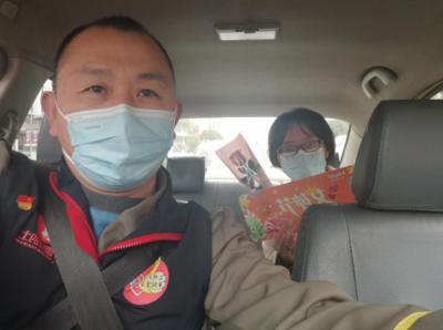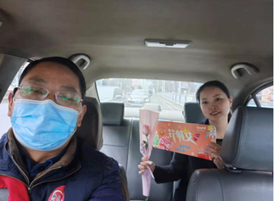 圖為:“三八”節(jié)當(dāng)天黨員的哥聶增權(quán)贈(zèng)送鮮花給乘客