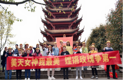 圖為:美天公司組織的姐開展“三八”節(jié)登山活動(dòng)