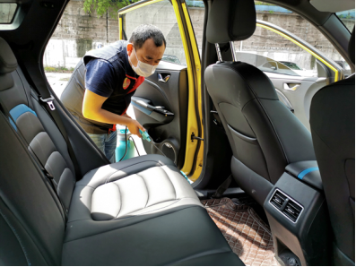 駕駛員嚴(yán)格落實(shí)營(yíng)運(yùn)車輛消毒和通風(fēng)措施,對(duì)車廂全面噴灑消毒水,并對(duì)乘客容易接觸的扶手、座椅、拉手等位置進(jìn)行重點(diǎn)擦拭消毒,為市民出行提供安全保障。