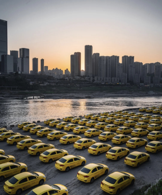183輛換標(biāo)啟悅出租車整齊劃一擺放在彈子石碼頭