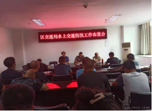 5月20日,區(qū)交通局召集轄區(qū)水運(yùn)企業(yè)、水工項(xiàng)目負(fù)責(zé)人、執(zhí)法支隊(duì)、事務(wù)中心等相關(guān)人員召開了水上交通大排查大整治大執(zhí)法“百日行動”暨防汛安全工作動員部署會,區(qū)交通局副局長沈自明對百日行動及防汛工作進(jìn)行了統(tǒng)一部署安排,在轄區(qū)營造良好的水上交通安全生產(chǎn)工作氛圍。