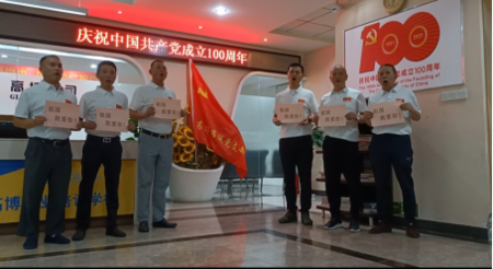 時值中國共產黨成立100年之際,高博客運分公司黨支部聶書記帶領全體黨員深入開展學習黨史,愛國、愛黨系列活動。5月19日下午2點,聶書記首先組織黨員代表加強黨史學習,接著號召全體黨員代表高舉愛國標語,深情呼喊愛國口號:“祖國,我愛你!”以此獻禮中國共產黨成立100周年。